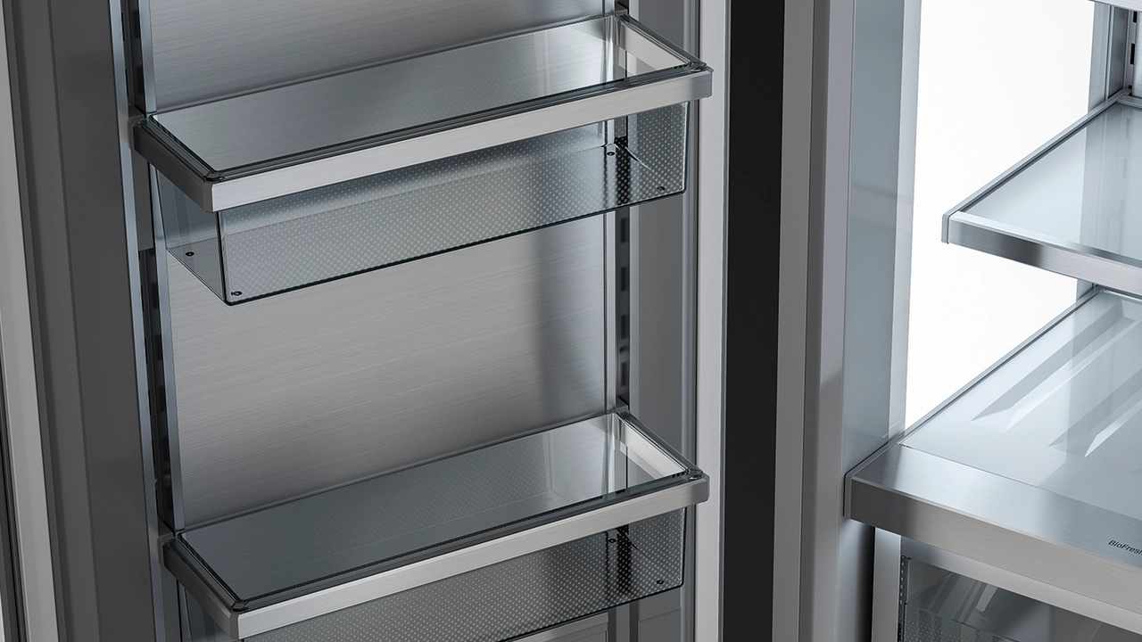 憑藉其獨特的設計,Monolith 耐用的冷凍櫃門儲物盒允許冷空氣自由流動,在保持溫度恆定的同時優化食品貯存。搭配的透明冰箱門儲物盒完全可調,能夠輕鬆容納中小型物品,因此,冷凍櫃內部擱架可用於放置較大的食物。